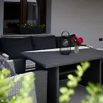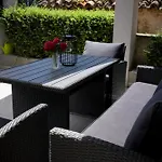 В апартаментах є повністю обладнана кухня для самостійного приготування їжі, а також обідня зона, де гості можуть розслабитися і насолодитися своєю їжею. Для зручності гостей передбачено таке кухонне обладнання, як кавоварка. Наявність тераси з видом на сад забезпечує гостям максимальний відпочинок.